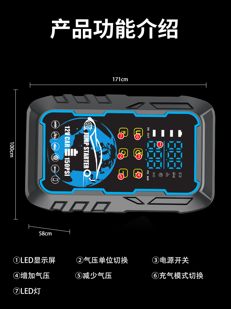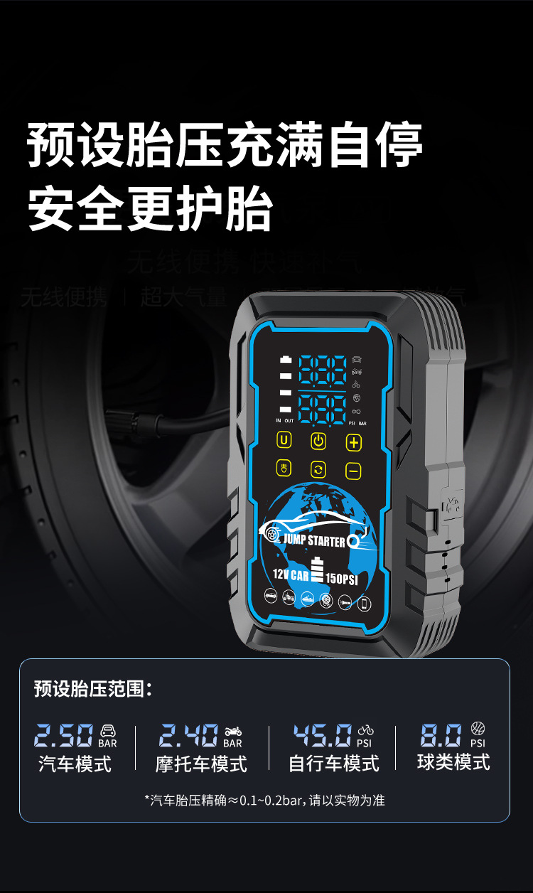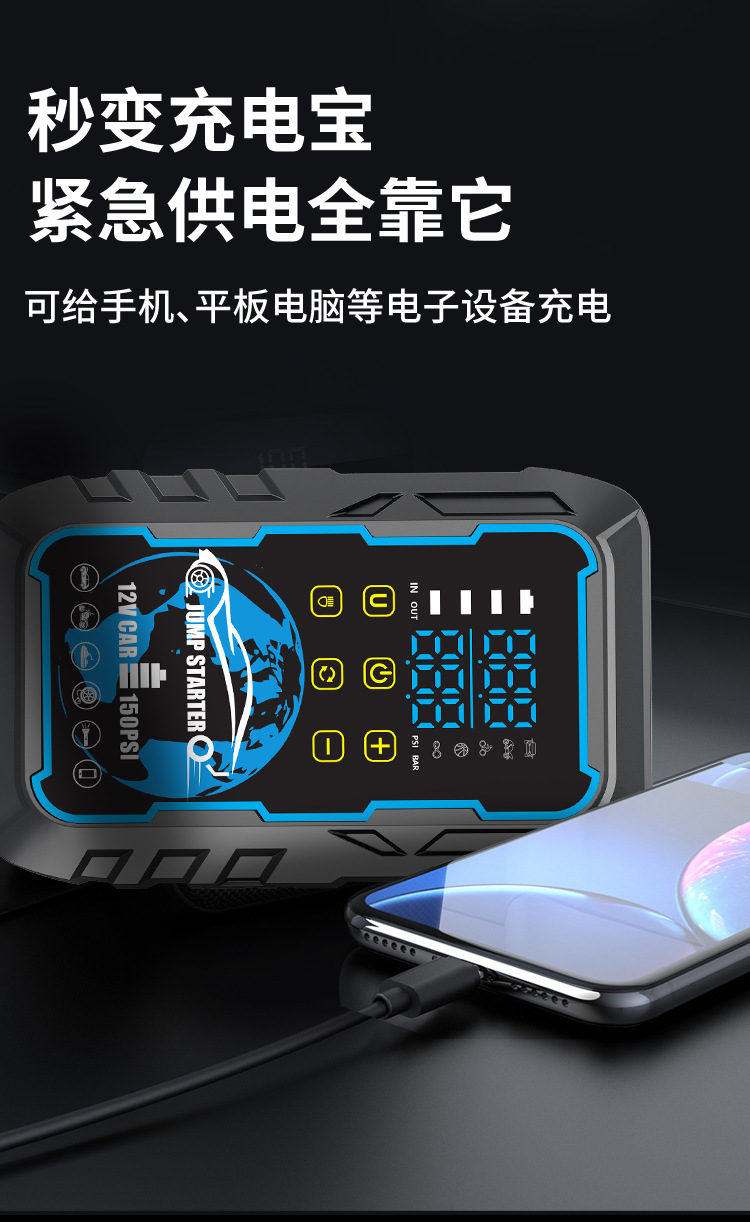 应急启动电源车载充气一体机充气泵强起便携户外打火搭电宝充电宝