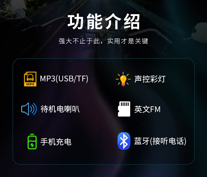 12V Motorcycle Scooter Tricycle Dedicated Long Strip Audio Car Handlebar Switch Charging Bluetooth FM Stereo
