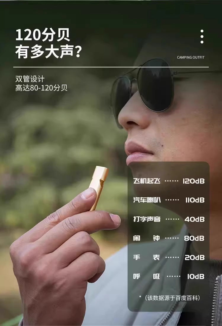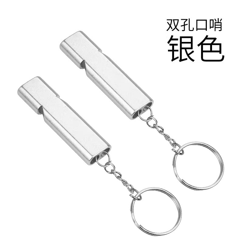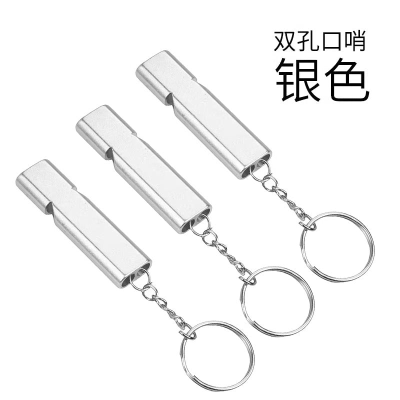 Outdoor Survival Whistle High Frequency Flat Aluminum Alloy Dual Frequency Survival Whistle Dual Tube Portable Gear EDC Tools