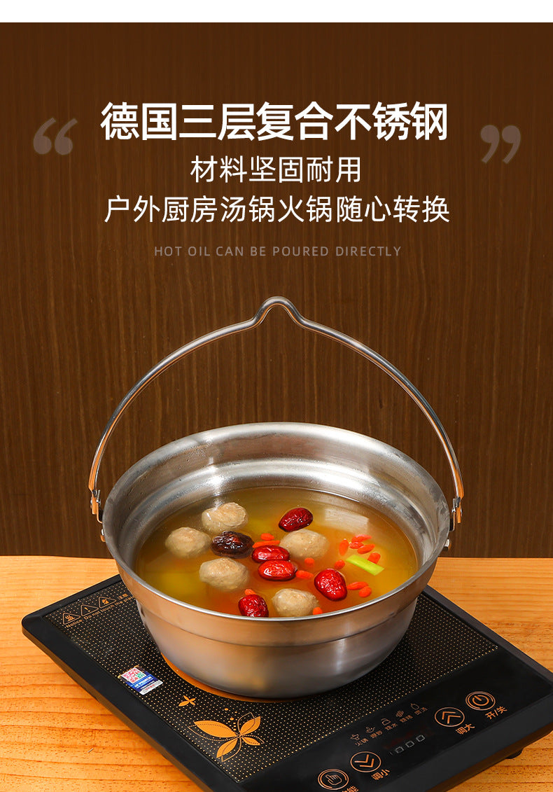 Premium Portable Hanging Pot Camping Stainless Steel Multifunctional Campfire Small Cooking Pot Soup Pot Hot Pot Outdoor Cooking Utensils